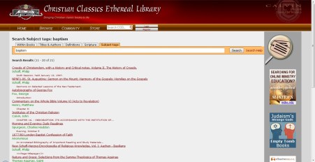 While most of us are appalled at the way the internet has and will continue to be used for less than virtuous purposes, it is also a tool that is being used for God’s glory. As many of you are aware, there are excellent online resources for bible study, but very few as useful as the Christian Classics Ethereal Library, which is a resource provided by Calvin College out of Grand Rapids, MI. Not only does the reader have access to thousand of dollars (if you purchased printed books) worth of classics such those written by Augustine, Luther, Calvin, Spurgeon, etc., but Calvin College has incorporated the amazing power of technology to quickly and easily search all of these classics at once by key words, subjects and scripture references: